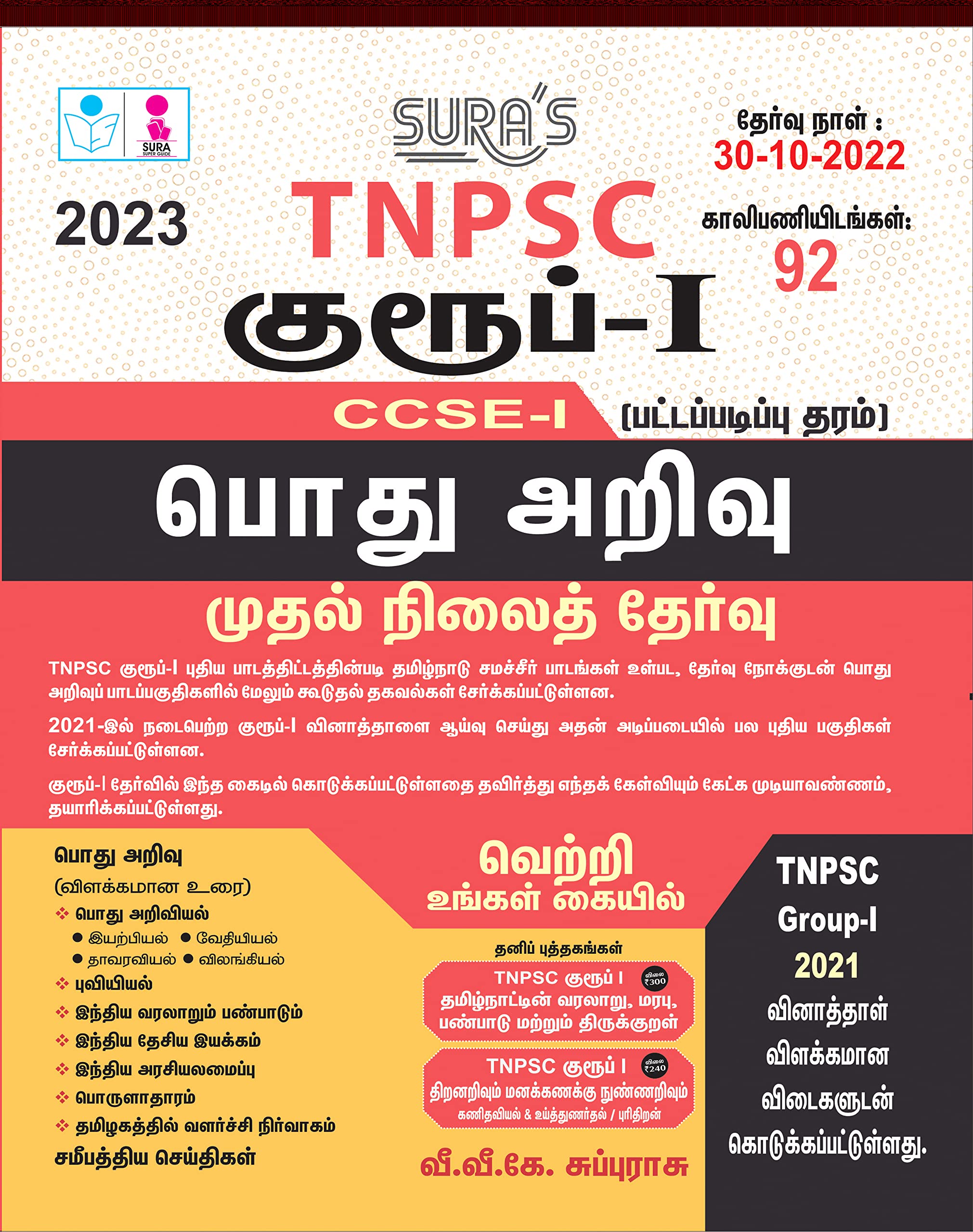Sura S Tnpsc Group 1 Preliminary Exam Ccse 1 Graduate Level General Studies Preliminary Exam Book In Tamil Medium Tnpsc New Syllabus Latest Edition 2022 V V K Subburaj Amazon In Books