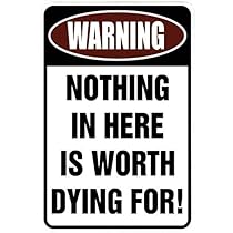 Amazon Com Custom Kraze Warning Nothing In Here Is Worth Dying For Funny Metal Sign For Your Garage Man Cave Yard Or Wall Patio Lawn Garden