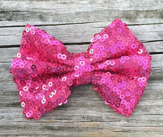 Hot Pink Hair Bow Bright Pink Sequin Hair Bow Glitter Bows Toddler Hair Clip Sparkly Hair Bows Pink Glitter Bow Pageant Bows Etsy